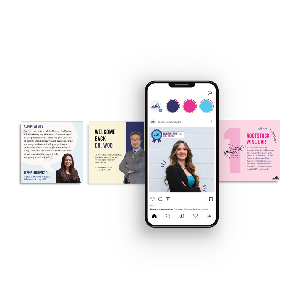 Bluestone Communications is James Madison University’s student-run public relations firm. Over four semesters, I helped transform the firm’s digital presence. This included modernizing its website, strengthening its brand identity, and building a more strategic and engaging social media presence.